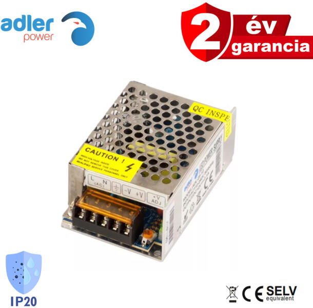 Termék részletekVigyázat! A készülék feszültség alá helyezése után a hálózati csatlakozó érintés életveszélyes! A védőföld használata érintésvédelmi okokból kötelező! A megfelelő beüzemelést elektromos szakember végezze! Csak beépítve használható!Bemenet: 230VAC-50 Hz (transzformátorral) Kimenet: 12V…13,8V/4A (szabályozható) Védelmek: rövidzárlat, túlterhelés, túlmeleg