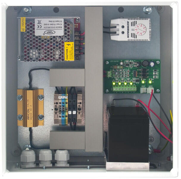 TechSon szünetmentes tápegység, 12 V DC, 3 A, 36 W, 4 pár kimeneti sorkapocs, hibajelzés, mélykisülés elleni védelem, áthidalási idő: 30 perc