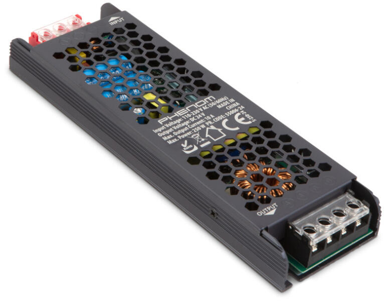Hálózati stabilizált tápegység 24 V DC 250 W, 10 A Alkalmazható LED szalagok, világítás- és biztonságtechnikai rendszerek üzemeltetéséhez. A tápegység be- és kimenete sorkapcsos rögzítésű. Ipari célú felhasználásra. kapcsoló üzemű stabilizált árnyékoló fémház rövidzár-, túlfeszültség- és hőmegfutás elleni védelem Bemeneti feszültség:110 - 230V AC (50/60