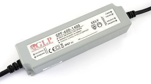 Termék részletekGLP GPF-60D-1400 58.8W 22~42V 1400mA IP67 LED tápegység