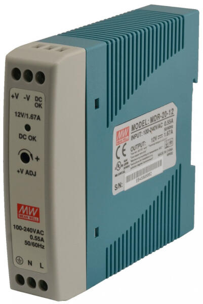 DIN sínre szerelhető, Tápegység, 12 V DC, 1,67 A, 20 W, 1 pár kimeneti sorkapocs