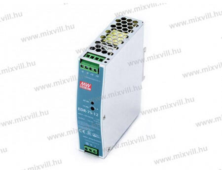 Típus: kapcsoló üzemű tápegység Teljesímény: 75W Kimeneti feszültség: 12V DC Kimeneti áram: 6.3A Tápfeszültség 90-264V AC, 127-370V DC Rögzítés: DIN Méret: 125.5 x 32 x 102mm Védelem: - túlfeszültség ellen - feszültség növekedés - zárlat ellen Kimenetek száma: 1