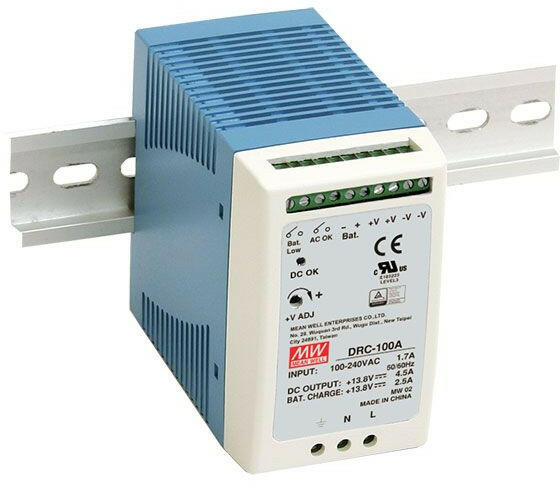 Mean Well DRC-100B Kétkimenetes sínre pattintható tápegység és akkumulátor töltő, Vin: 90-264VAC / 127-370VDC, Vout: 27,6VDC/3,5A / 27,6VDC/1,25A, P: 100W ( DRC-100B )