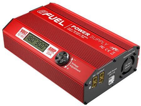SkyRC eFuel 30A/540W power supply The 540W power supply supports 12-18V output and has built-in PFC which is an important aspect in all power supplies. The eFuel is ideal for high-voltage and three-port chargers, as well as other devices. The 100-240V power supply range allows for universal use without the need for DC port settings. Functionality The dual DC port supplies up to 30 amps. Thanks to