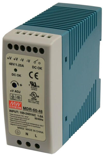 DIN sínre szerelhető, Tápegység, 48 V DC, 1,25 A, 60 W, 2 pár kimeneti sorkapocs