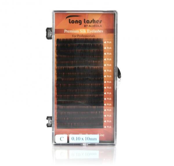 C íveltségű, 0.10mm vastagságú, 10mm hosszúságú selyem szempilla 16 sorban. Prémium minőségű szempillák, melyek véghatása selyemfényű. Könnyített súlya miatt Duplázó technikához ajánlott. Egy tálcán belül egy méretezés.