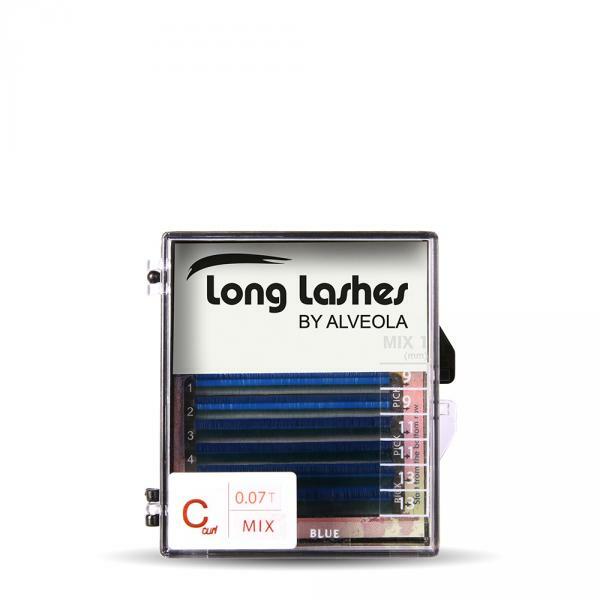 C íveltségű, 0.07mm vastagságú, kék színű szempilla mini MIX tálcás kiszerelésben (6 sorban). A színes szempilla változatokkal nem csak egy hagyományos pillasort készíthetsz el, hanem a szálmennyiség növelésével akár különleges munkákat is alkothatsz esküvőhöz, fotózáshoz, vagy éppen a kifutókra. Méretezés: 9-9-11-11-13-13mm