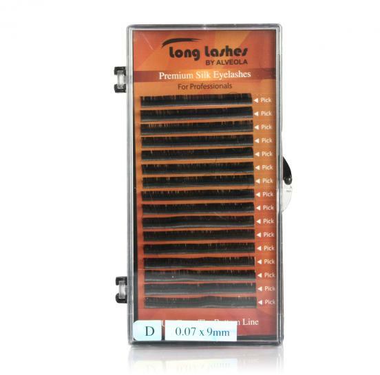 D íveltségű, 0.07mm vastagságú, 9mm hosszúságú selyem szempilla 16 sorban. Prémium minőségű szempillák, melyek véghatása selyemfényű. Könnyített súlya miatt Volume technikához ajánlott. Egy tálcán belül egy méretezés