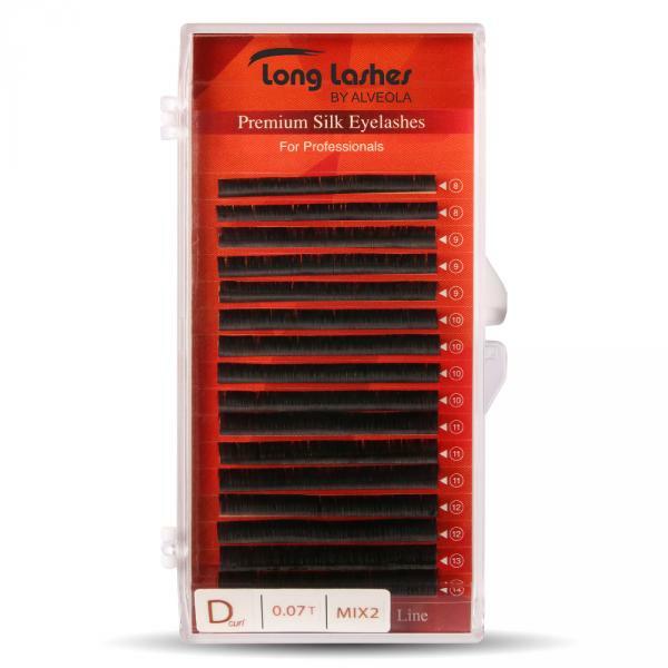 D íveltségű, 0.07mm vastagságú, selyem MIX szempilla 16 sorban. Prémium minőségű szempillák, melyek véghatása selyemfényű. Könnyített súlya miatt Volume technikához ajánlott. Méretezés: 8-9-10-11-12-13-14mm