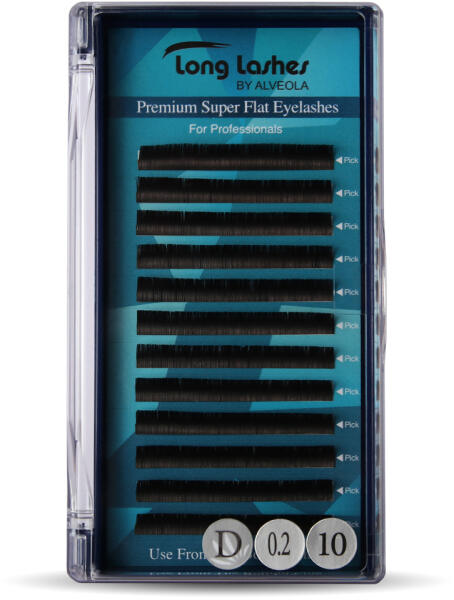 A Long Lashes Super Flat szempilláival 1D technika mellett 2D hatást érhetsz el, mindezt akár 35%-kal megnövelt szempilla élettartam és 75%-al könnyebb pillasúly mellett. A Super Flat szempillák lapított, ellipszis alaka ugyanazt a merész és drámai hatást biztosítja, mint amit a 0,20-as és 0,15-ös vastagságú Flat pilláknál megszokhattál. A különbség mégis hatalmas! Egy s