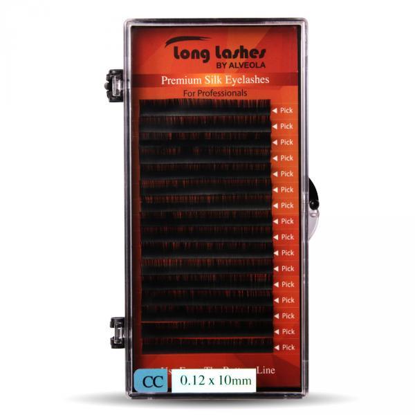 CC íveltségű, 0.12mm vastagságú, 10mm hosszúságú selyem szempilla 16 sorban. Prémium minőségű szempillák, melyek véghatása selyemfényű. Könnyített súlya miatt Duplázó, illetve Klasszik (1D) technikához ajánlott. Egy tálcán belül egy méretezés.