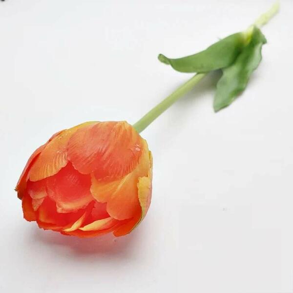 Tulipán; élethű művirág – gumi tulipán; real touch; dupla szirmú; 40cm-NARANCS Kiegészítője lehet: csokor, asztaldísz, tavaszi dekoráció. Kreatív ajándék alapanyag lehet: születésnap, névnap, esküvő, anyák napja, egyéb esemény…