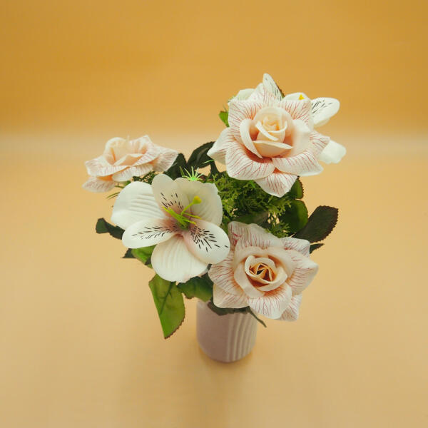 Selyem vegyes csokor 3 rózsával és 2 alstroemeria fejjel, 6 színben