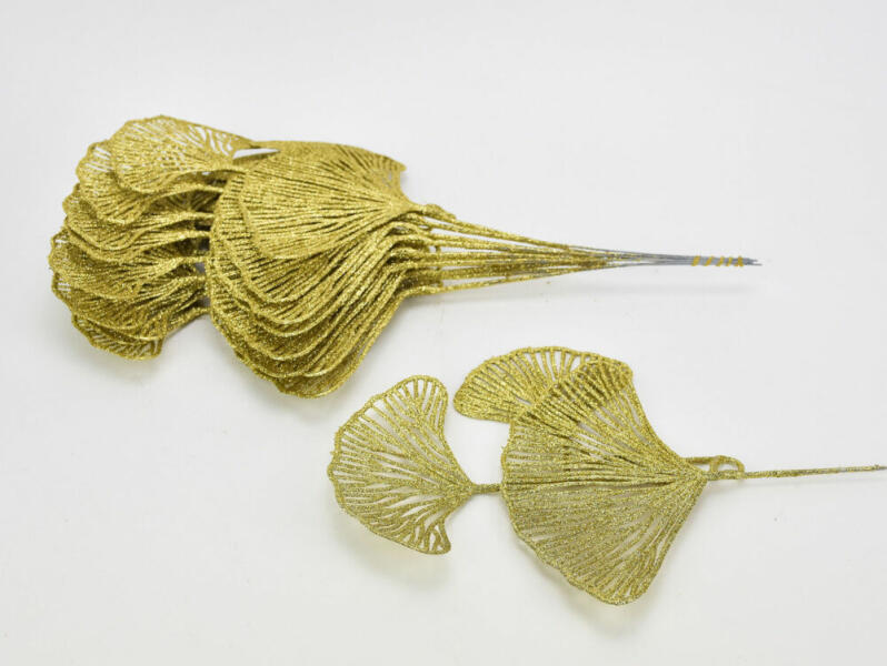 Csillámos gingko levelek otthoni vagy kirakati díszítéshez. Méret : hossz: 35cm, szél: 19cm, Levelek mérete: 10/13/18 cm