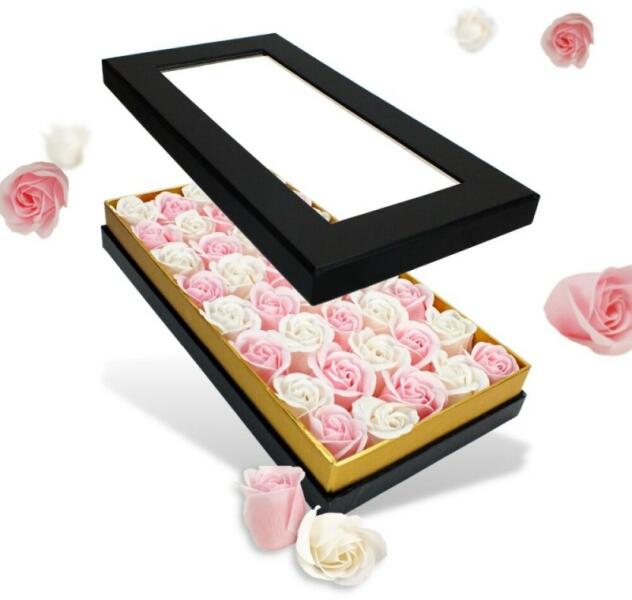Örvendeztesd meg szeretted ezzel a népszerű fekete dobozos 40db-os fehér-rózsaszínű szappanrózsa szelencével, legyen szó születésnapról, anyák napjáról, névnapról, vagy csak úgy. A szappanrózsák tökéletes kiegészítői lehetnek a fürdőszobának, hiszen nem csak szépek, de hasznosak is. Ha fehér-rózsaszínű szappanrózsát használsz a fürdéshez, akkor egy kellemes i