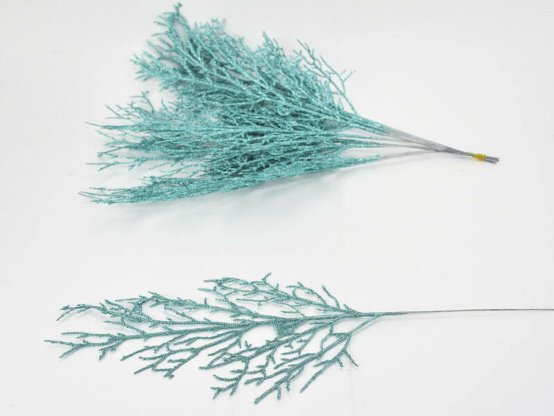 Nagy türkiz csillámos ágasbog műnövény dekor: otthoni vagy kirakati díszítéshez. Önmagában vagy kiegészítő díszítéshez, készítményekhez egyaránt használható. Méret: hossz: 42cm, szél: 18cm