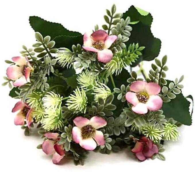 Asztali száraz virágcsokor, ami dekoráláshoz ugyanúgy felhasználható, például koszorúk, ajándékcsomagok, dekoládák és sok más dekor díszítéséhez alkalmazható. Előnyei, hogy nem hervad el, évekig friss marad, olcsó és élethű. Méret: 30cm (szárral), virágfej mérete: 2-2,5cm A virág színében árnyalatnyi különbségek előfordulhatnak.