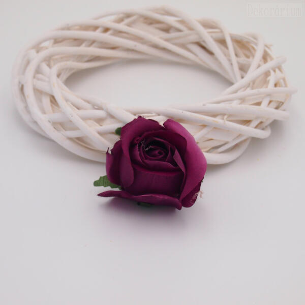 Selyem sötétlila nagy rózsabimbó fej. A háttérben 25cm-es alap van viszonyításképpen.