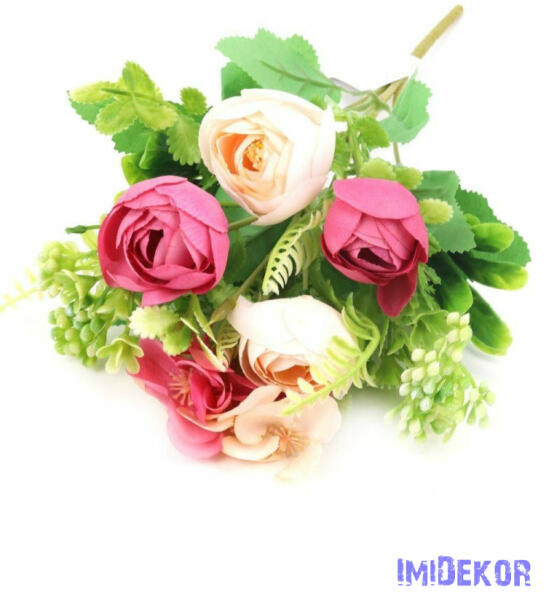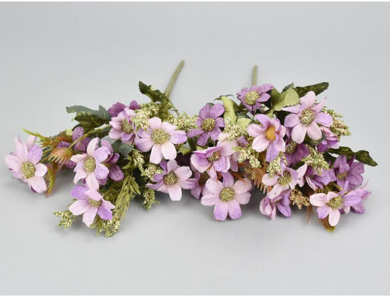 Cosmos csokor műnövény lakás dekorálásra és asztali kiegészítőnek. Előnyei, hogy nem hervad el, évekig friss marad, olcsó és élethű. A virág színében árnyalatnyi különbségek előfordulhatnak.