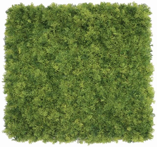 Fali alkalmazás A Fake Moss Wall Dark ideális a zöld falak díszítésére és kialakítására. A mesterséges élő moha panel buja zöld ágaival bármilyen falat természetes környezetté is változtat. A nagyszámú apró ágak lenyűgöző árnyékhatást keltenek napfényben, és valósághű megjelenést kölcsönöznek a mohafalnak. Ez a mesterséges mohafal a telepítés után nem ig