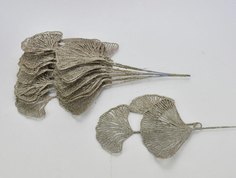 Csillámos gingko levelek otthoni vagy kirakati díszítéshez. Méret : hossz: 35cm, szél: 19cm, Levelek mérete: 10/13/18 cm