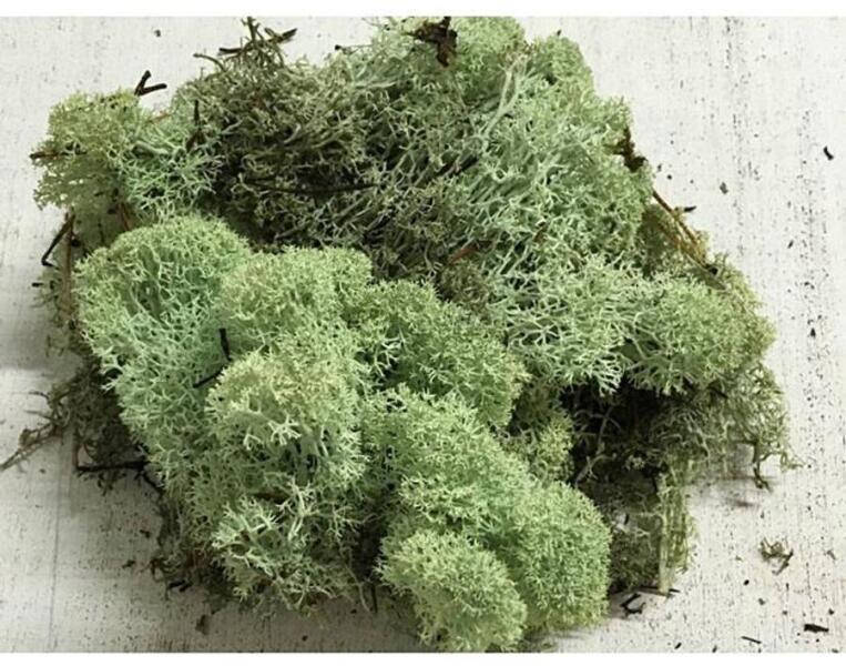 Kreatív ötletekhez, kötészeti kompozíciókhoz, tömítő anyagként és díszítő elemként is használható, almazöld izlandi zuzmó. Állaga: nedves. Árnyalatnyi színkülönbségek előfordulhatnak.