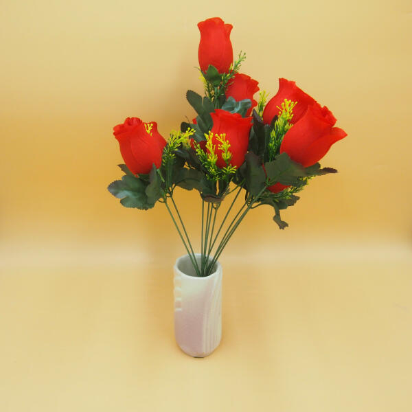 Selyem nagy fejű 10 virágos rózsabimbó csokor 5 színben