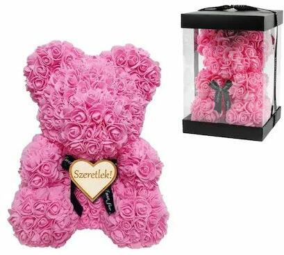 Örök virág maci - rózsaszín színben Hungarocell maci gyönyörű 3D habrózsákkal beborítva, díszdobozban. Egyedi és örök ajándék születésnapra, évfordulóra, Valentin-napra, anyák napjára, karácsonyra, esküvőre, illetve bármilyen más alkalomra, ahol szeretnél egy igazán gyönyörű és maradandó ajándékot adni. A siker garantált lesz! Mérete: 40 cm Egyedi szív form