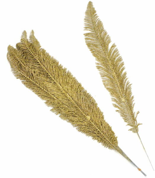 Arany csillámos toll formájú műnövény otthoni vagy kirakati díszítéshez. Önmagában vagy kiegészítő díszítéshez is. Méret : hossz: 55cm, szél: 12cm