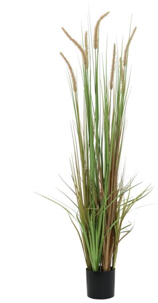 Fountain grass in autumnal colors, in pot Bring decorative greenery into your home and offices with the artificial lampbane grass! During the production of the approx. 120 cm tall ornamental grass, a lot of attention was paid to lifelike details: starting with the pseudo-ears, which resemble lamp cleaner brushes, to the slender, filigree leaves in various shades of brown and green. The stalks with
