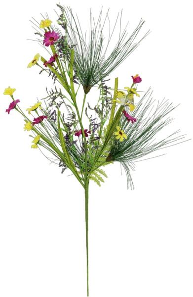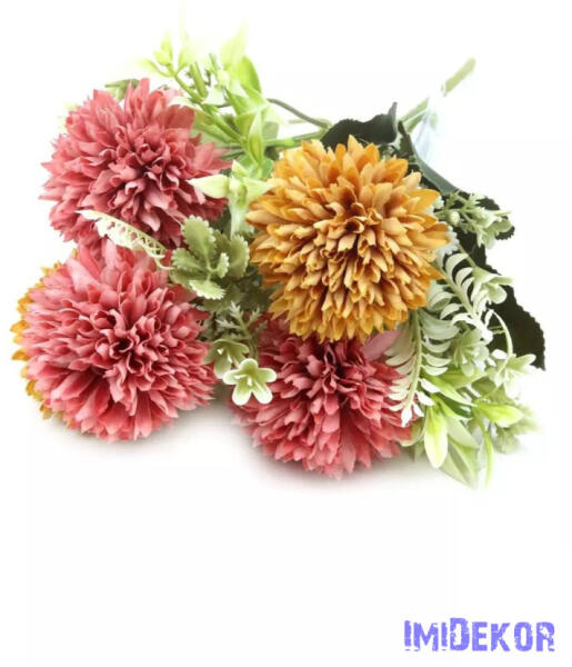 Barnás-zöld árnyalatú selyemvirág csokor, amely természetes és rusztikus hatást kelt. Az 57 cm magas csokor tökéletesen illik földszínekkel díszített belső terekbe vagy őszi dekorációkhoz. 5999093344212