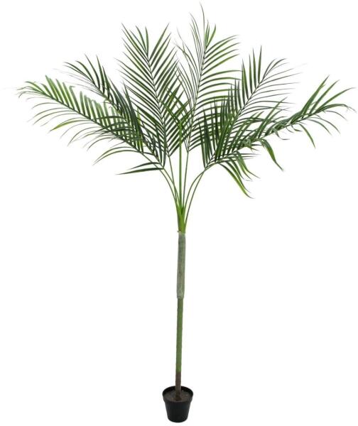 A műfa autentikusan gyökerező törzse hozzávetőleg 756 levele és 24 virágsziromja van. A részletgazdag leveleknek és virágoknak köszönhetően a műfa rendkívül valósághűnek tűnik, és alig lehet megkülönböztetni az igazitól. Valódi fából készült pálmafa törzse teszi teljessé a wisteria valósághű megjelenését. Műfánk egy fekete Ø 18 x H 17 cm-es cserépben ker