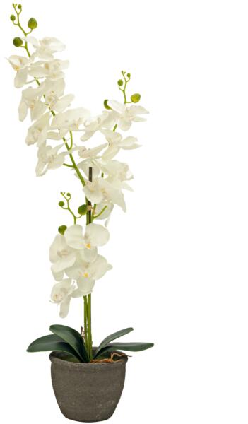 Orchid with cream-colored flowers in a natural stone optic decorative pot The wild beauty of orchids has always fascinated humans. However, orchid plants are also considered to be very demanding and sensitive. "Light, but no direct sun", "Avoid draughts", "Fertilize regularly, but not too much", "Diving instead of watering - but only with rainwater", these are just some of the care instructions th