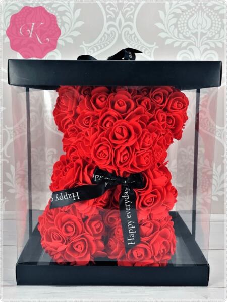 25 cm Rózsa Maci: 250 db habrózsából Ajándék díszdobozban! (25 cm) Válassz hozzá feliratot! E gyedi, különleges és életre szóló!