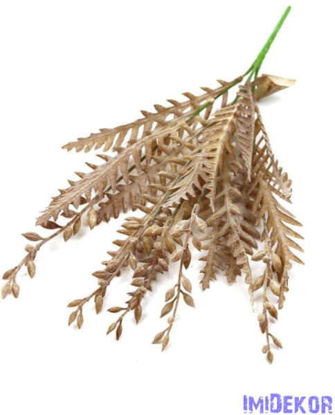 Arany matt óriás pajzsika ág otthoni vagy kirakati díszítéshez. Önmagában vagy kiegészítő díszítéshez is. Méret : hossz: 90cm, szél: 16cm