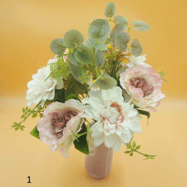 6 fejű, 2 féle virágfejjel és gumi eucaliptus-al, 8 színben. A színválasztás a képek bal alsó sarkában lévő sorszámok alapján lehetséges.
