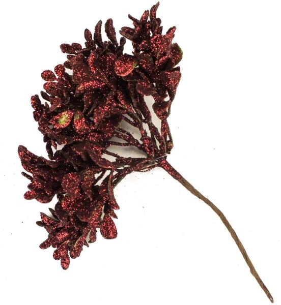 Csillámos műnövény dekor: otthoni vagy kirakati díszítéshez. Önmagában vagy kiegészítő díszítéshez, készítményekhez egyaránt használható. Méret : hossz: 19cm (ággal), 9cm (ág nélkül) levelek méretei: 0,5x1cm - 1x1,5cm
