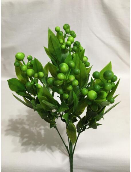 Zöld bogyós csokor, műnövény. Hossza 33 cm (szárral együtt). Kreatív dekorációk, ajándéktárgyak, lakásdekorációk gyönyörű kiegészítője lehet...