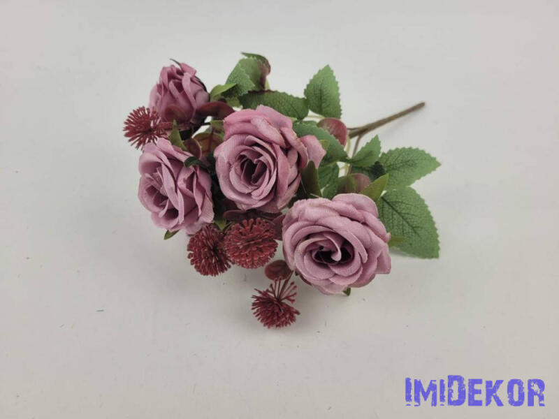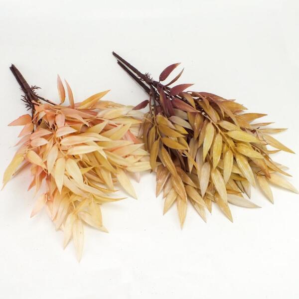 Szárazvirág hatású műnövény csokor. Kisebb-nagyobb dekorációk kiegészítéséhez ajánljuk, de önmagában is természetes hatású, a tavasz és nyár hangulatát idéző dekoráció. Méret: teljes hossz: 38cm szár nélkül: 26cm
