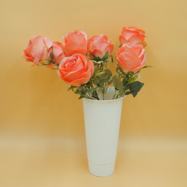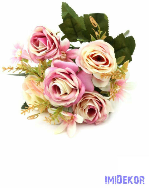 Nagy fejű 7 virágos selyem rózsabimbó csokor