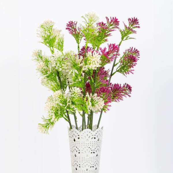 Asztali száraz virágcsokor, ami dekoráláshoz ugyanúgy felhasználható, például koszorúk, ajándékcsomagok, dekoládák és sok más dekor díszítéséhez alkalmazható. Előnyei, hogy nem hervad el, évekig friss marad, olcsó és élethű. Méret: 35cm A virág színében árnyalatnyi különbségek előfordulhatnak.