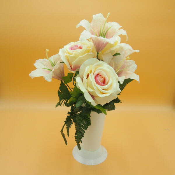 Selyem vegyes csokor 4 liliommal és 3 rózsával, 7 színben