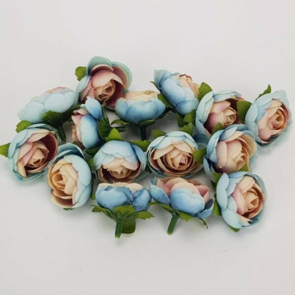 Kb. 3 cm-es, kékes-rózsaszínes begónia (selyemvirág) fej. Asztali és ajtódíszekhez, koszorúkhoz, virágboxokhoz, esküvői dekorációkhoz, tortákhoz, vagy bármely egyéb dekoratív készítményekhez kiválóan felhasználható. Az ár 1 db begónia fejre vonatkozik!