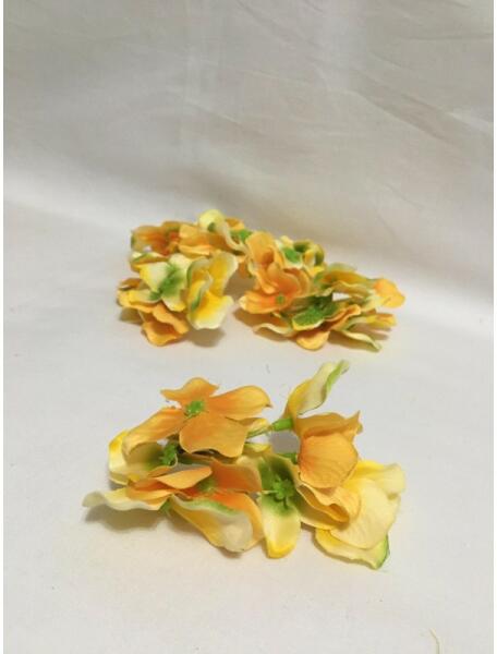 Kb. 6 cm-es, sárga színű hortenzia (selyemvirág) fej. Asztali és ajtódíszekhez, koszorúkhoz, virágboxokhoz, esküvői, ballagási, születésnapi, keresztelői dekorációkhoz, tortákhoz, vagy bármely egyéb dekoratív készítményekhez kiválóan felhasználható. Az ár 1 db hortenzia fejre vonatkozik!