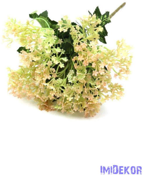 Szárazvirág hatású műnövény csokor. Kisebb-nagyobb dekorációk kiegészítéséhez ajánljuk, de önmagában is természetes hatású, a tavasz és nyár hangulatát idéző dekoráció. Méret: teljes hossz: 36cm szár nélkül: 26cm