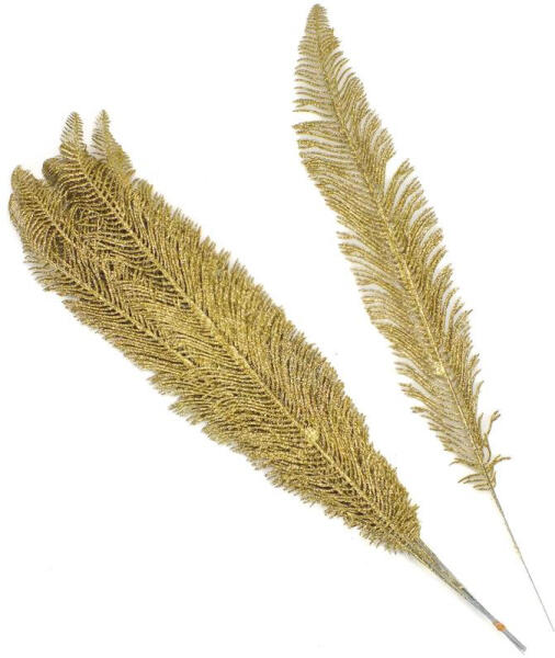 Arany csillámos toll formájú műnövény otthoni vagy kirakati díszítéshez. Önmagában vagy kiegészítő díszítéshez is. Méret : hossz: 55cm, szél: 12cm