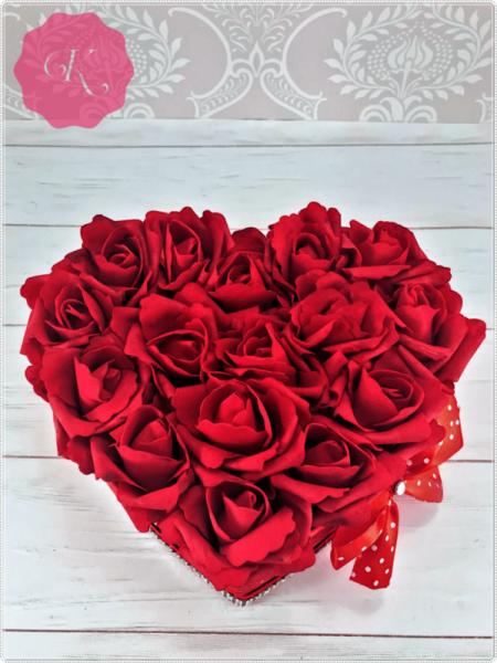 Szív rózsadoboz tartalma: 13 "polifoam" rózsafejet tartalmaz a rózsafejek átmérője 6 cm Válaszd ki a rózsa színét! Vála ssz hozzá feliratot! Ajá ndék díszcsomagolás!