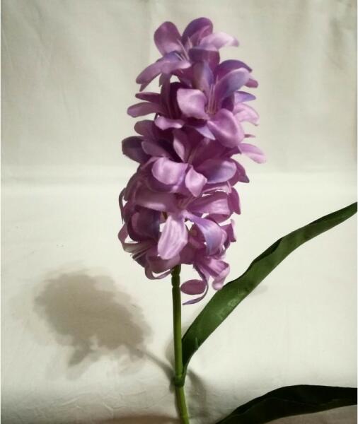 40 cm hosszú, lila színű jácint szál, műnövény. Lakások dekorálására, asztali kiegészítőnek, tavaszi, nyári, esküvői, ballagási, születésnapi, keresztelői, bármely egyéb dekoráció készítéséhez, vagy "csak" egyszerűen vázákba.