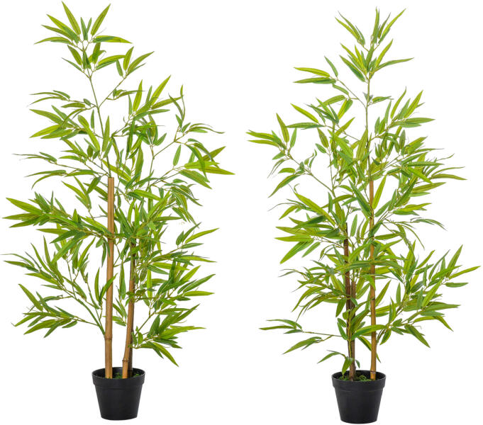 2 db mesterséges bambusz növényből álló készlet cserépben, Outsunny, Beltéri/Kültéri, 120 cm h, Zöld Nincs öntözés, nincs műtrágyázás, nincs gond utazás közben. A valósághű megjelenésű levelek természetes légkört teremtenek minden helyiségben, és kevés karbantartást igényelnek. Már becsomagolva, használatra készen, bármilyen bútorhoz passzolva szállítjuk, k