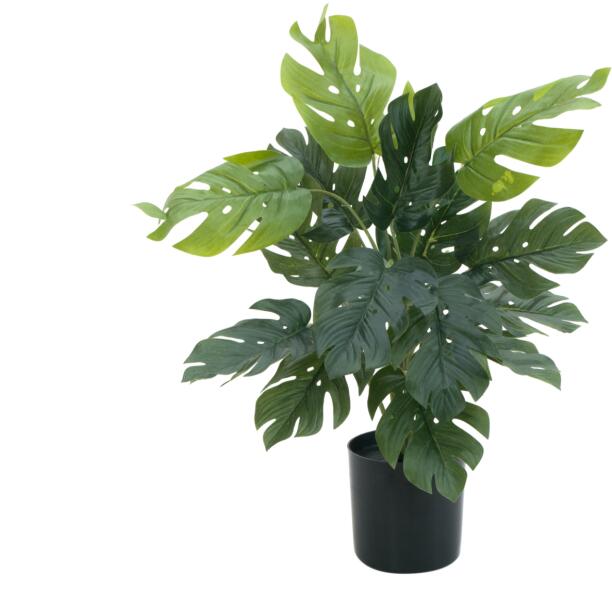 Split philodendron with leaves made of high-quality PEVA The luxuriant young plant of Europalms has been modelled very closely on its model from the rainforest of South America. Especially the leaves made of waterproof tarpaulin hardly differ from the leathery, shiny leaves of the original. The Philodendron has a total height of approx. 38cm and is already delivered in a black gardener's pot. This